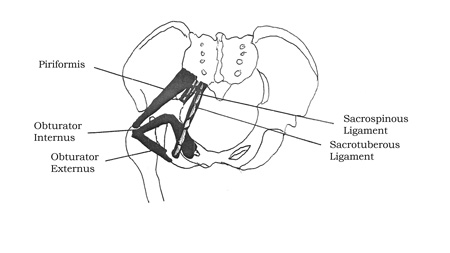 In research done at the close of the 1990’s, the ligaments that hold the sacrum to the pelvis (the sacroiliac ligaments) were shown to regulate activity in the gluteous muscles and the muscles of the lower spine (Indahl, A., et al., “Sacroiliac joint involvement in activation of the porcine spinal and gluteal musculature”, Journal of Spinal Disorders, 1999. 12[4]: p. 325-30). I would say, based on my own experience, that the sacrotuberous, sacrospinous, and iliolumbar ligaments can also regulate activity in the muscles of the pelvis and lower back, and in the muscles of the lower abdomen.